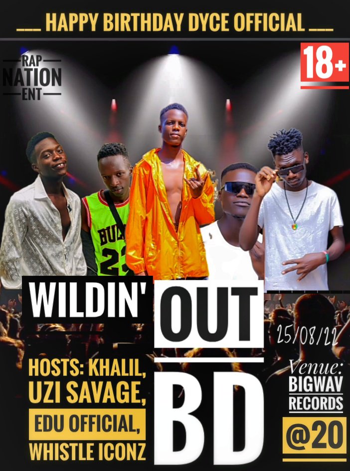 Dyce Official‘s Wildin’ Out birthday party will be held on 25, August, 2022 in Kawempe, Uganda at Bigwav Recording Studios. We’re expecting a lot of talent show up, fun, jazz, live band and many more performances from different Ugandan artists.